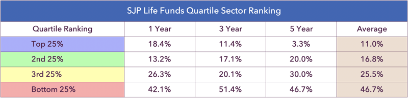To eliminate any concern of rating bias, we removed our rating criteria and analysed how each SJP fund performed when compared alongside all other funds within their respective sectors over the past 1, 3 & 5 years, and focus on their quartile ranking.
